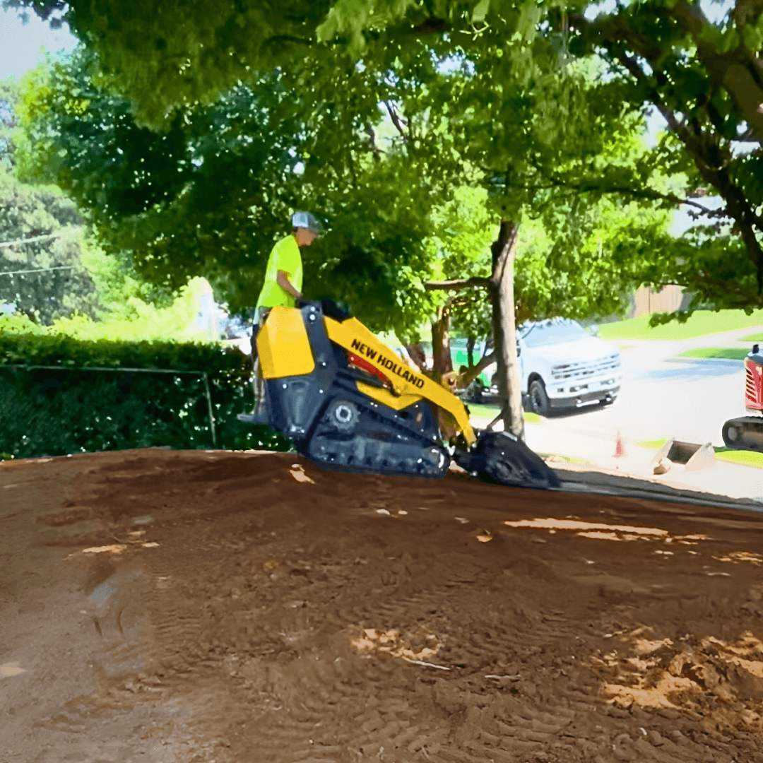 Finely screened topsoil is delivered, spread, and graded to create a smooth, level lawn.